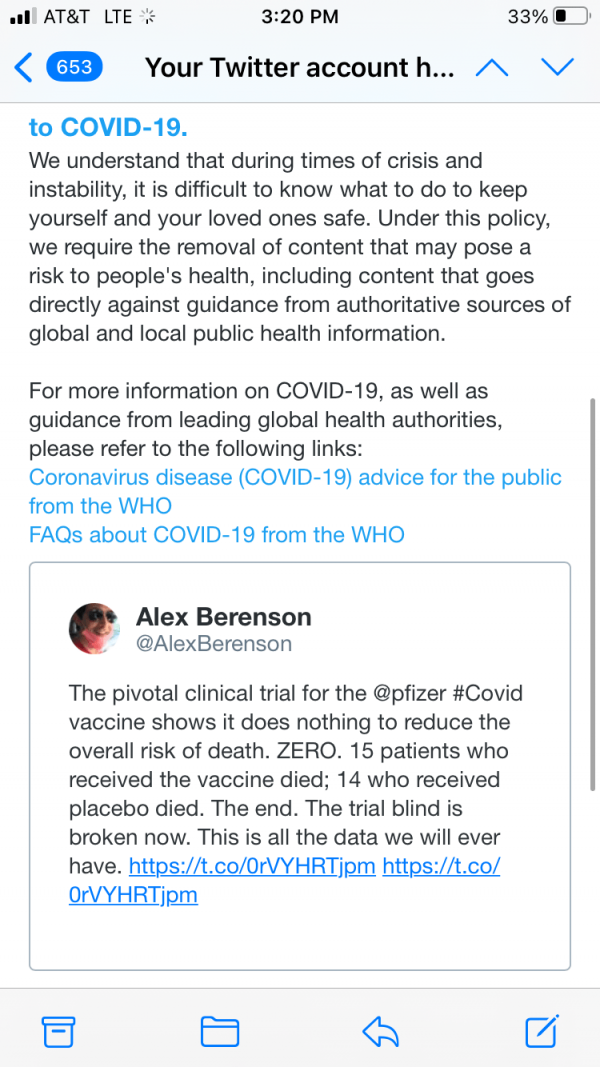 Berenson has been effectively confined to Substack by Big Tech due to his discussing dissenting views on the science surrounding Covid-19. His latest offense against Big Tech came when he posted the results published by Pfizer of its own clinical data. He claimed that the research showed little difference in mortality between those in the trial with a vaccine and those given a placebo.
