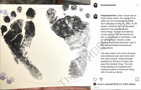 Dr. Fua posted a very honest, gut-wrenching update on June 9. She said Baby Ara was “born sleeping” and without a heartbeat on May 12, just three days after her last update. Dr. Fua suffered placental abruption. That means the placenta partially or fully detached from the uterus. Thus the baby was receiving inadequate oxygen and nutrients from the mother. This condition happens in about 1 in 100 births, according to the Cleveland Clinic.