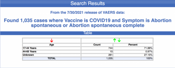 There were 522 spontaneous abortions reported in the Vaccine Adverse Event Reporting System (VAERS) on June 11. Seven weeks later, and as “vaccine” mandates and coercion increase, the system reported 1,035 spontaneous abortions. That’s a 98% increase in less than two months.