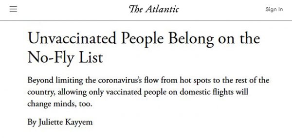 If you’re not “persuaded” by their argument (and prepping for your third and fourth boosters if you’re already vaxxed in order to be considered “fully vaccinated”) then they’ll just put you on the No Fly List!